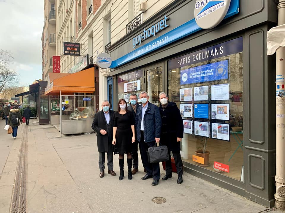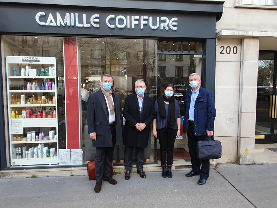 Rencontre, le 23 février dernier, entre une délégation du Syndicat d’Initiative du 16ème (Christophe Girbe, Pierre Gaboriau, François- Marie Lorio et Gérald Barbier) auprès de quelques commerçants de l’avenue de Versailles (Valérie Rodet-Rieu de l’agence immobilière Guy Hoquet, Camille Coiffure, le restaurant libanais  » Le Beyritus  » la boucherie  » Les bouchers doubles  »).