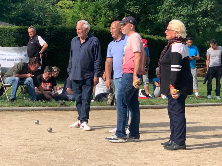 Malgré un temps très incertain, plus d’une trentaine de triplettes se sont affrontées sportivement sous les yeux de nombreux passionnés, dont Virginie Shenzhen – Coordinatrice du Téléthon Paris et des Elus de notre arrondissement.