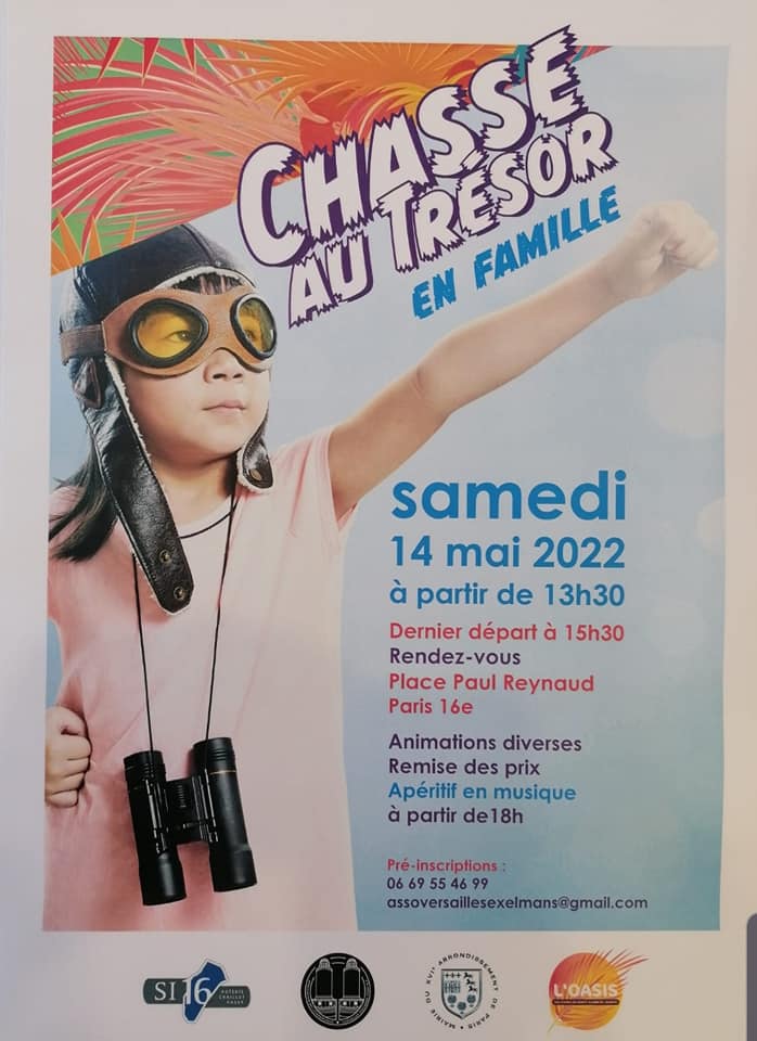 Excellent après-midi à Auteuil sud à l’occasion de la première édition de la Chasse au Trésor organisée par l’association des commerçants Versailles-Exelmans, le Syndicat d’Initiative du 16ème et l’Oasis des jeunes de la paroisse sainte Jeanne de Chantal, en partenariat avec le Conseil de Quartier Auteuil sud et la Croix Rouge du 16ème.