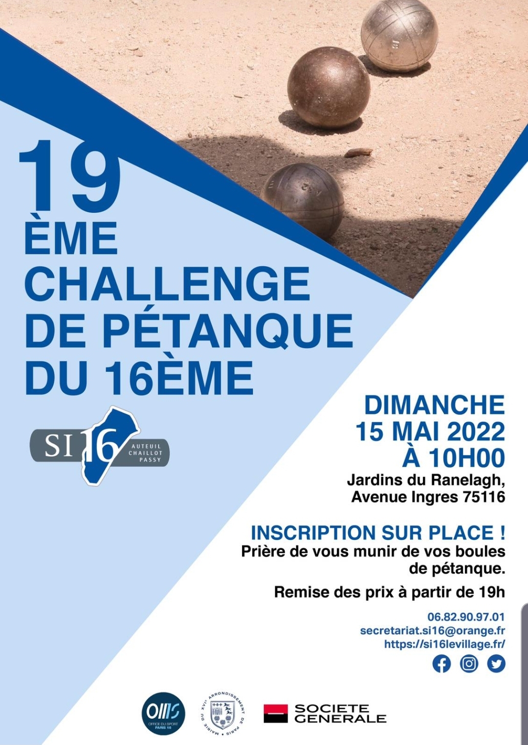 Retour sur la 19ème édition du Challenge de Petanque du 16ème organisée dans les jardins du Ranelagh, en partenariat avec l’OMS du 16ème, les associations de commerçants, sous l’égide de la Mairie de notre arrondissement.