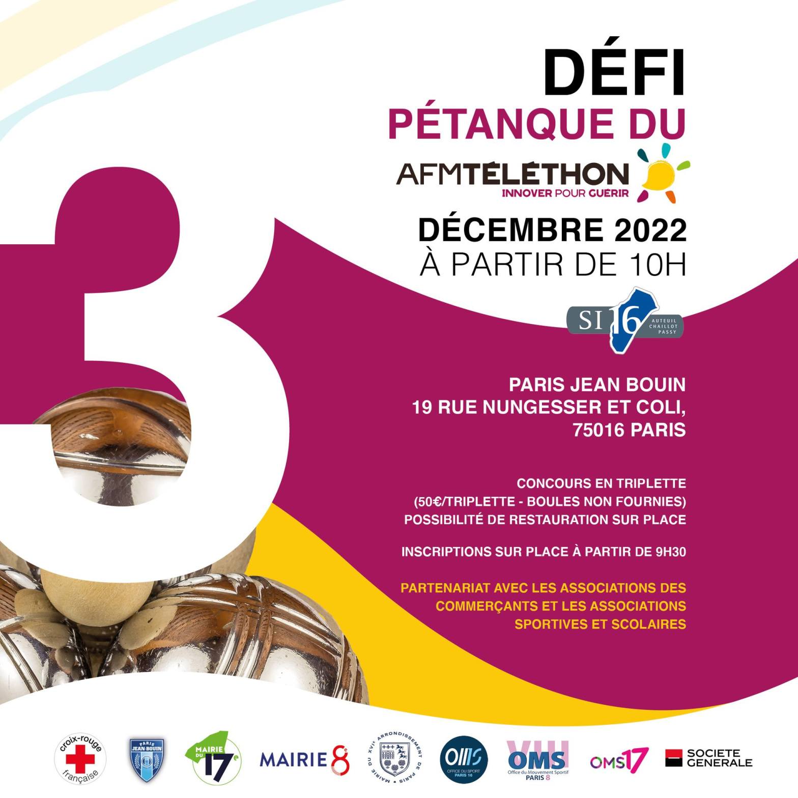 Le SI 16 vous a invité au défi pétanque en faveur du Téléthon le samedi 3 décembre.