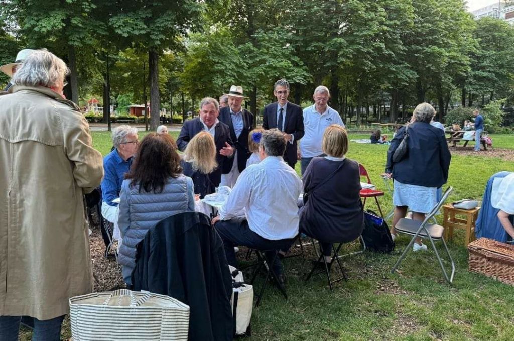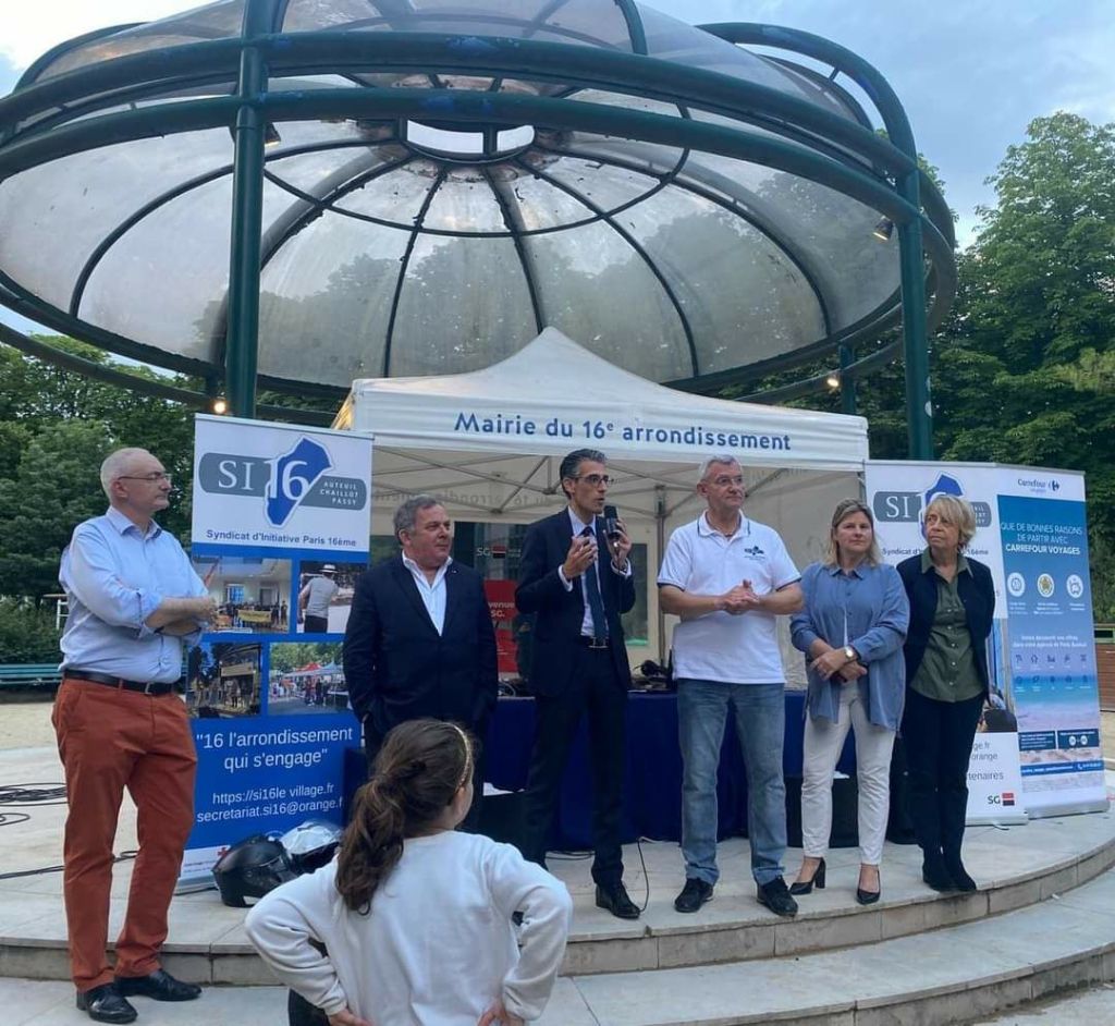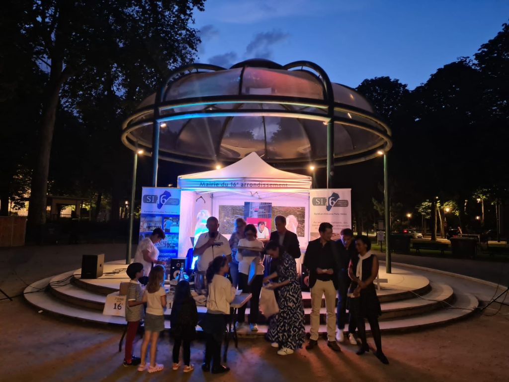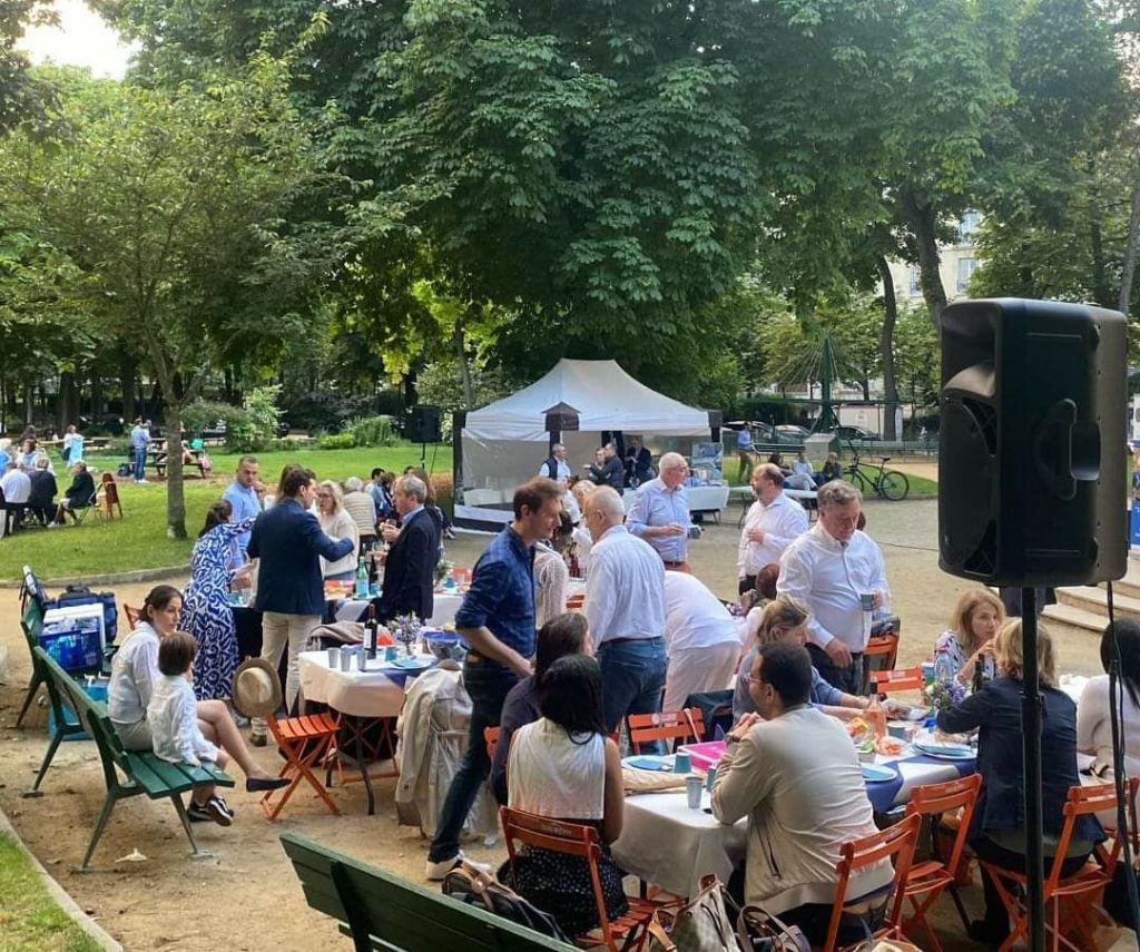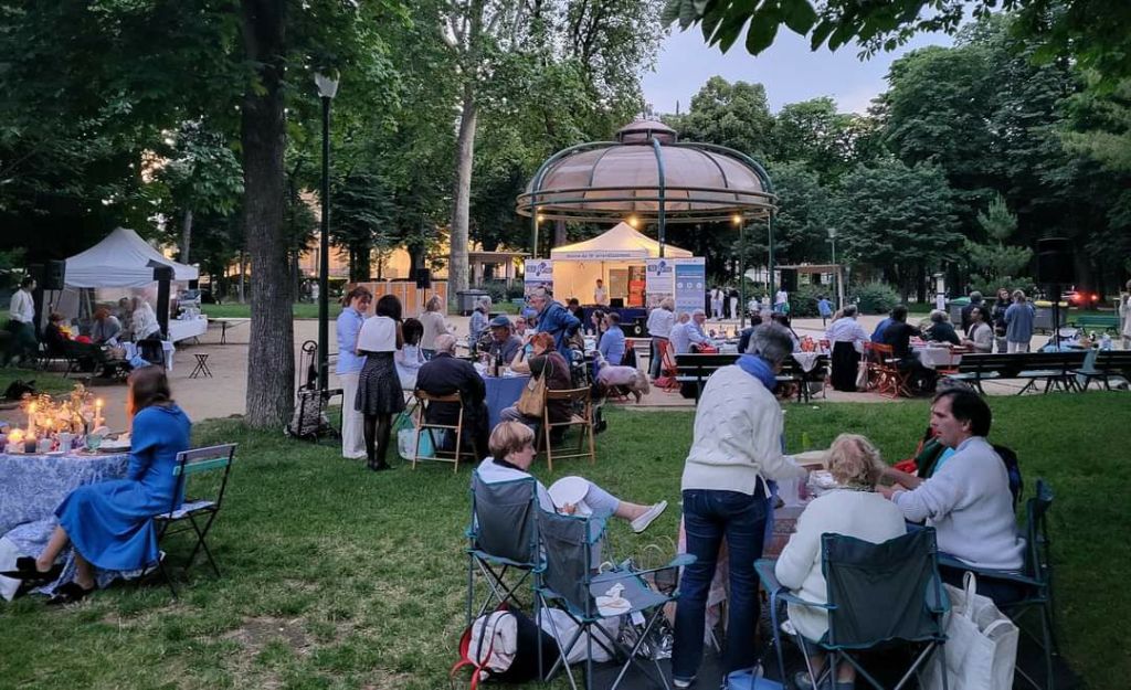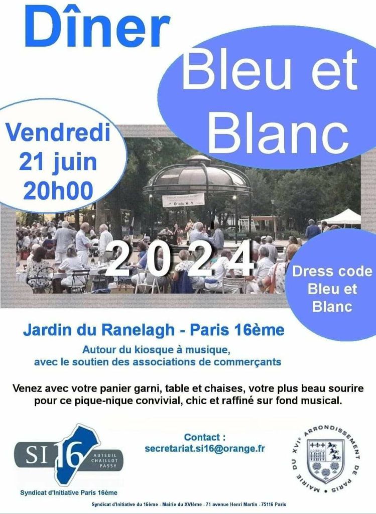 Ambiance très conviviale, vendredi 21 juin dernier, dans les jardins du Ranelagh à l’occasion de la 8ème édition du Dîner Bleu et Blanc organisé par le Syndicat d’Initiative du 16ème et la Mairie du XVIème.