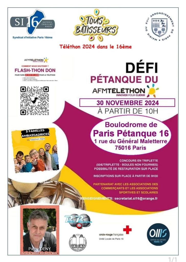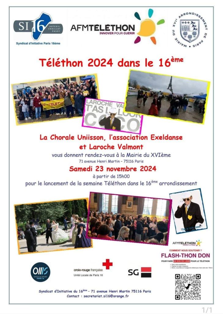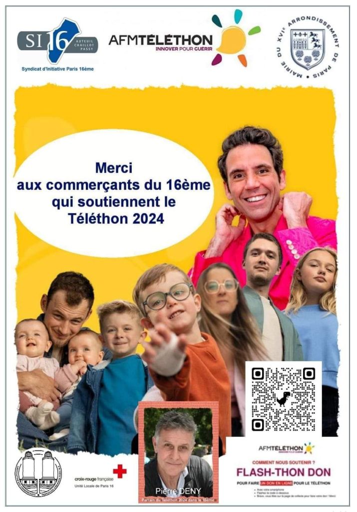 Le lancement de la semaine Téléthon dans le 16ème s’est déroulé le samedi 23 novembre 2024, à la Mairie du XVIème , à l’invitation de notre Maire Jérémy Redler , aux côtés des Élus de l’arrondissement, de Pierre Deny – Parrain de cette édition 2024, Franck Capillery et des partenaires historiques du Syndicat d’Initiative du 16ème.