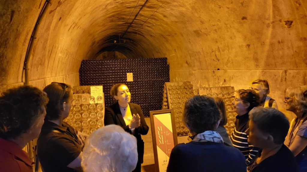 Le groupe a apprécié ce moment convivial et la découverte de ce champagne de renommée internationale, notamment la visite des trésors cachés dans les caves.