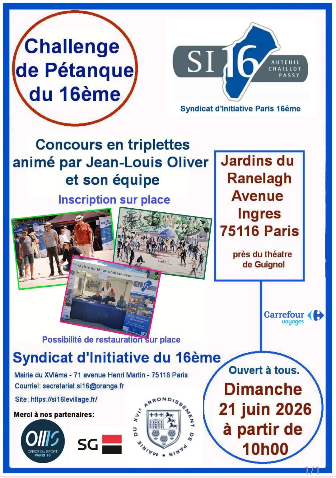 Le saviez-vous ? Cet événement est organisé avec le précieux soutien de nos partenaires : l’Office du Sport Paris 16, la Société Générale, Carrefour Voyages et la Mairie du 16ème.